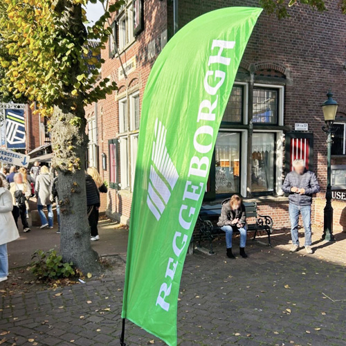 Je wilt dat je vlag altijd goed zichtbaar is — ook wanneer het windstil is. Hoogformaat baniervlaggen blijven strak hangen en zorgen ervoor dat jouw merk van grote afstand herkenbaar is. Ideaal voor bedrijfspanden, showrooms en locaties waar uitstraling telt. Het doek is stevig, weerbestendig en gemaakt voor langdurig buitengebruik. Je kiest het formaat en afwerking, wij zorgen dat de vlag netjes hangt en jouw merk professioneel presenteert.