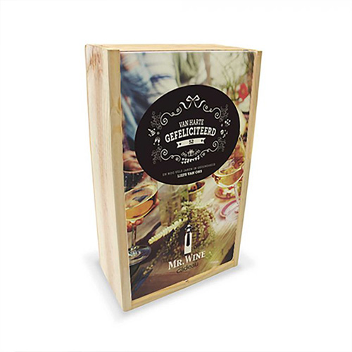 Ook praktisch gezien biedt een wijnkist veel voordelen. De kist beschermt de fles tijdens transport en overhandiging. Dat geeft zekerheid en voorkomt beschadigingen. Bovendien oogt het geheel direct af en compleet — je hoeft niets meer toe te voegen om het cadeau “af” te maken.
